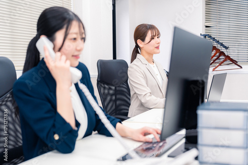 Fototapeta premium オフィスでにこやかに電話対応をするビジネスウーマン
