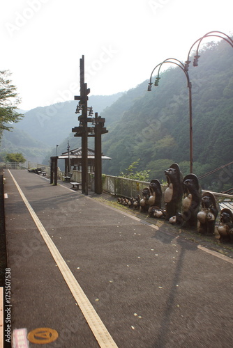 Fototapeta premium 嵯峨野トロッコ鉄道からの風景 トロッコ保津峡駅