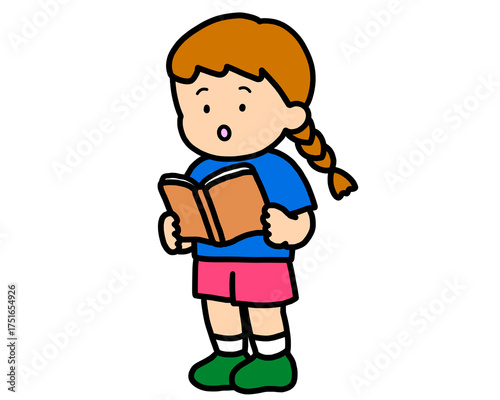 Fototapeta premium 本を読む(立ち)茶髪の女の子