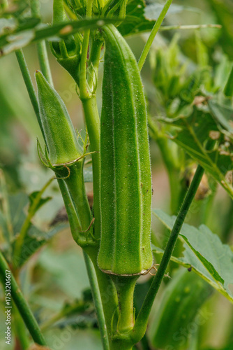 © Gottchin Nao, Obraz premium 畑で育つ新鮮なオクラ