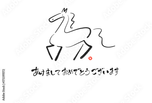 © 真知子 甲斐, Naklejka premium 墨絵の馬のスタイリッシュな和風年賀状 2026 テキストスペース