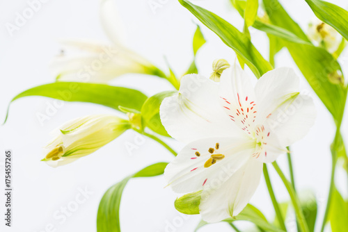 Fototapeta premium アルストロメリアの白い花を白背景で撮影14