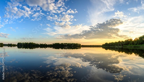 © 健 板澤, Fototapeta premium 鏡のような水面に映る幻想的で美しい青空