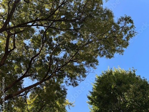 © Ahong, Obraz premium 나뭇잎 사이로 올려다 본 푸른 하늘