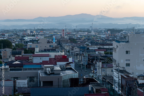 Obraz premium 朝の水沢の町並み 岩手県奥州市