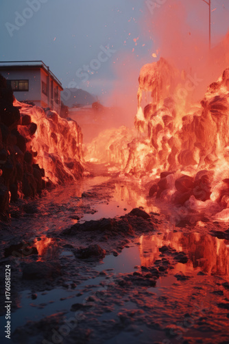 © design, Fototapeta premium 火災によって家が燃える様子