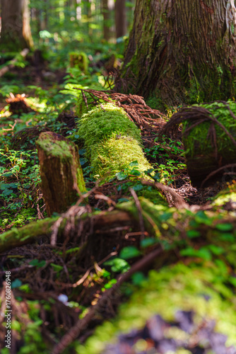 Obraz premium 杉林の地面( 飛騨小坂) 2025年10月中旬撮影