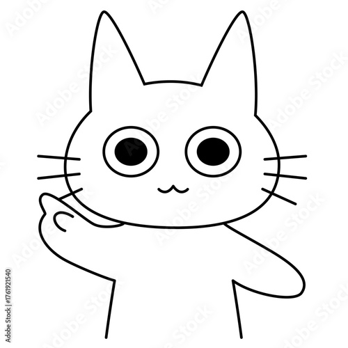 Obraz premium 指差しポーズの白猫キャラクター|案内や説明に使いやすいかわいい猫のベクターイラスト