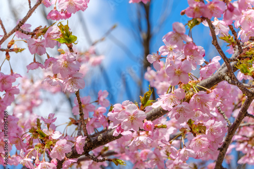 Obraz premium 青空を背景に満開に咲くピンク色の美しい桜の花