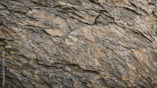 Fototapeta premium 粗いグレーの岩肌に細かなひび割れと凹凸が広がり、 サイドからの柔らかな光が陰影を生み出して立体感を強調しています。...