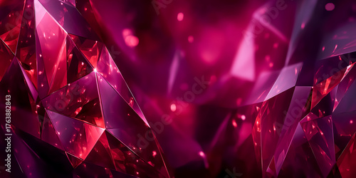 Naklejka premium 赤いファセットが輝くプレミアム抽象背景、ルビートーンの多面体テクスチャ―バナー向け