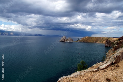 © Пальцына Ирина, Fototapeta premium Скала Шаманка - сердце Байкала (остров Ольхон, мыс Бурхан)