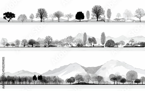 Obraz premium 다양한 종류의 나무들이 자연스럽게 어우러진 벡터 일러스트레이션으로, 자연의 아름다움과 평화로움을 섬세하게 표현했습니다.