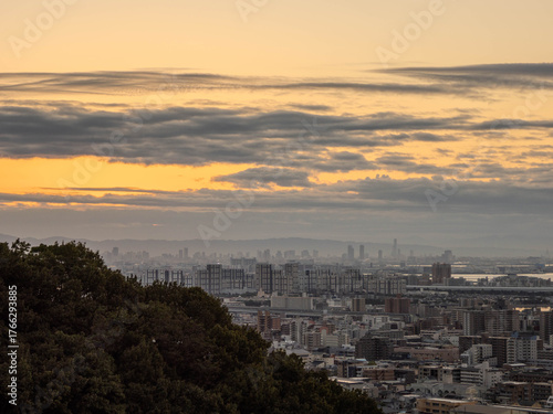 Obraz premium 神戸岡本の高台から芦屋大阪方面の夜明け