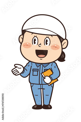 © いわたまさよし, Obraz premium 工場や現場で働く女性作業員が説明しているイラスト|不安全行動・不安全状態・労働災害