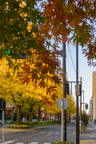 © rujin, Naklejka premium 秋の杜の都を歩く