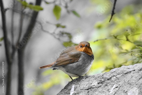 © まー, Fototapeta premium 石の上に止まるコマドリ