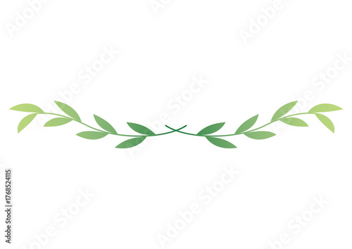 © みずもり, Obraz premium グリーンのグラデーションリーフの飾り罫線