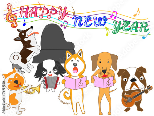 © shin28, Obraz premium 2018年の年賀状素材の犬のコンサート