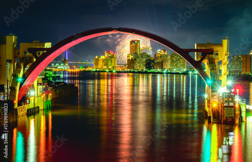 Obraz premium 安治川水門と夜景