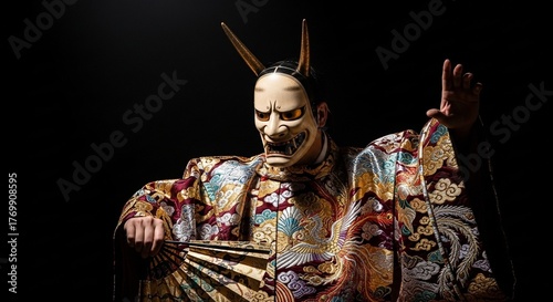 Obraz premium 日本伝統の芸術:般若の面をつけて演じる能楽師