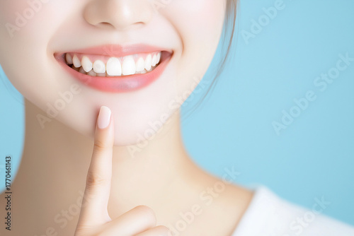 © mei, Obraz premium 美しい健康な歯を見せて笑う女性の口元アップ