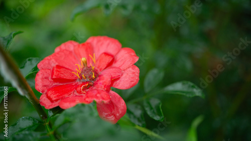 Fototapeta premium 雨に濡れた鮮やかな赤い花