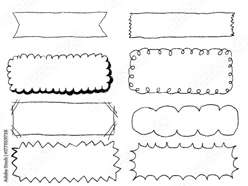 © gurimayo, Obraz premium 手描きあしらいセット フレーム モノクロ 鉛筆