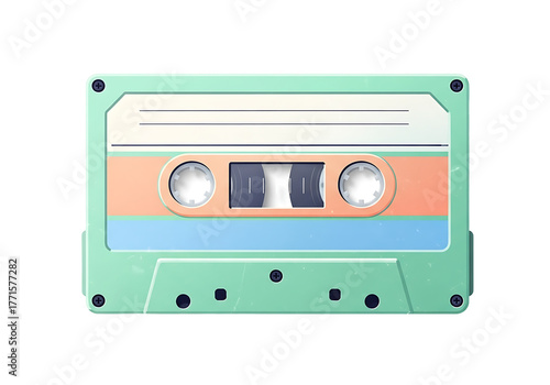 Obraz premium パステルカラーが可愛い!レトロなカセットテープのイラスト素材。懐かしい音楽、録音、オーディオ機器