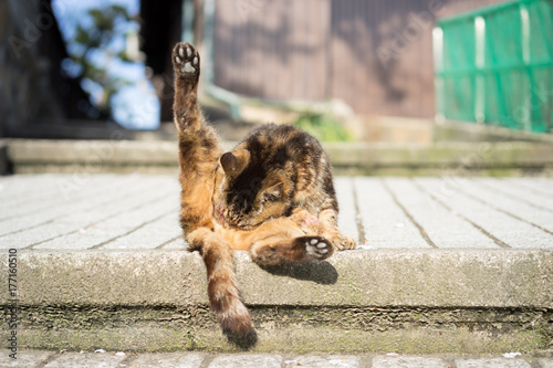 © chachamal, Obraz premium 毛づくろいをする野良猫(日本・広島県・尾道)