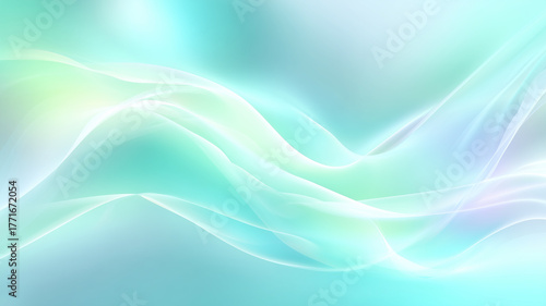 Obraz premium 緑と青の抽象的な光の波(医療・科学・テクノロジー向け背景)