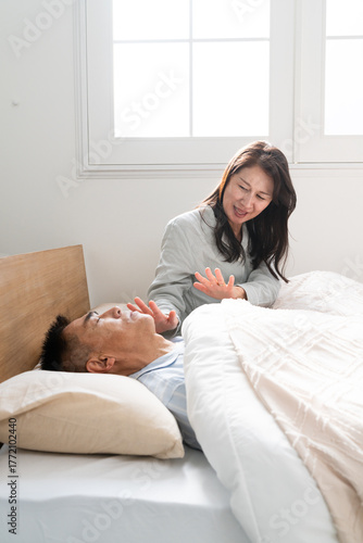 © aijiro, Fototapeta premium 夫のいびきで起こされる妻