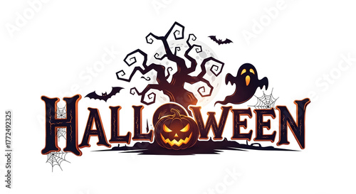 © GGG laboratory, Fototapeta premium ハロウィンの夜の不気味なカボチャと幽霊のロゴ