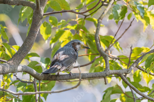 © Kazutaka, Obraz premium 新緑の木にとまるヒヨドリの横顔