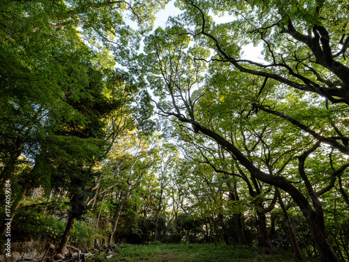 © Takamori Miyagishi , Obraz premium 大木に覆われた六甲山の登山道