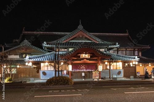 Naklejka premium 夜の山鹿市にある山鹿温泉「さくら湯」