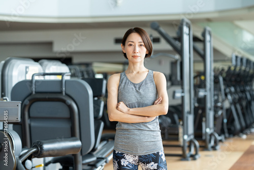 Obraz premium ジムでトレーニングするミドルの女性 撮影協力:スポーツクラブ&サウナスパ ルネサンス 幕張24