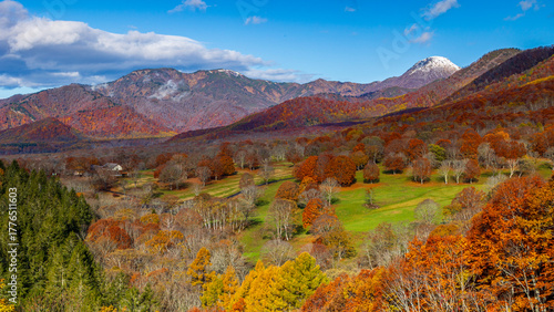 © Yuuki Kobayashi, Fototapeta premium 冠雪した新潟焼山と紅葉 笹ヶ峰 秋の新潟 絶景