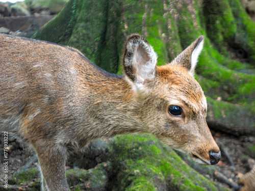 © かめです, Fototapeta premium 若草の森に遊ぶ子鹿