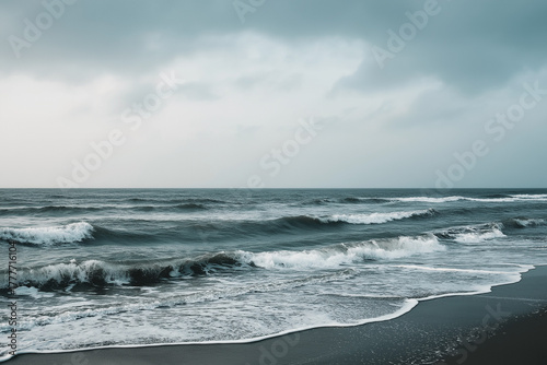 Fototapeta premium 静かな海の呼吸 ― 曇り空の下で揺れる波のリズム