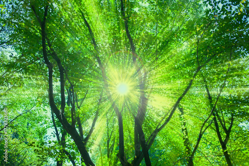 Obraz premium 緑の森 太陽光