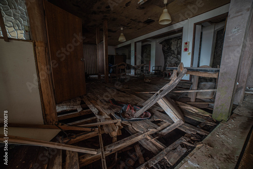 © Kinapi, Obraz premium 廃墟となった廃旅館の内観
