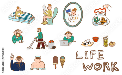 © Mariko, Fototapeta premium 起きてから寝るまでのゆるいイラストアセット