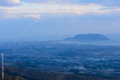 Fototapeta premium 北海道 夕暮れ時の函館 城岱牧場からの風景