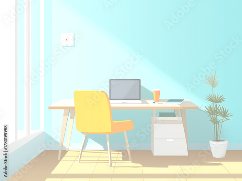 © Wasabi, Fototapeta premium 日当たりの良い部屋のモダンなワークスペース