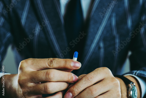 Obraz premium カプセルを持っている男性