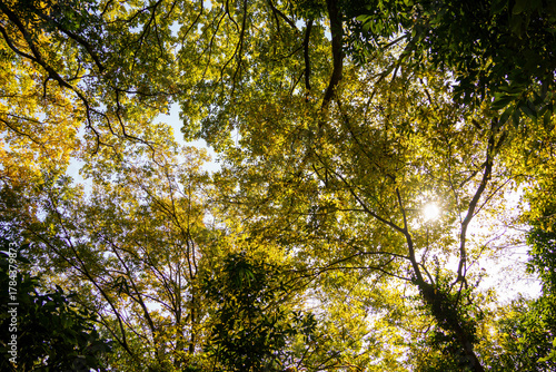 Fototapeta premium 森の中に差し込む木漏れ日の光