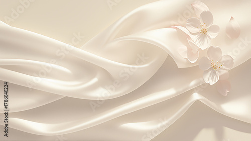 © Wasabi, Obraz premium 白いシルクのドレープと桜の花の背景