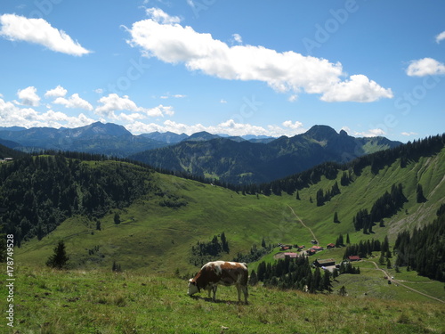 © haruirograf, Fototapeta premium 放牧された牛と山並み