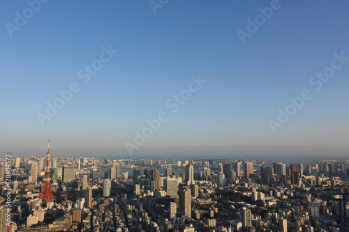 Naklejka premium 日本の東京都市風景「東京の青空」(画面左に東京タワーなど)